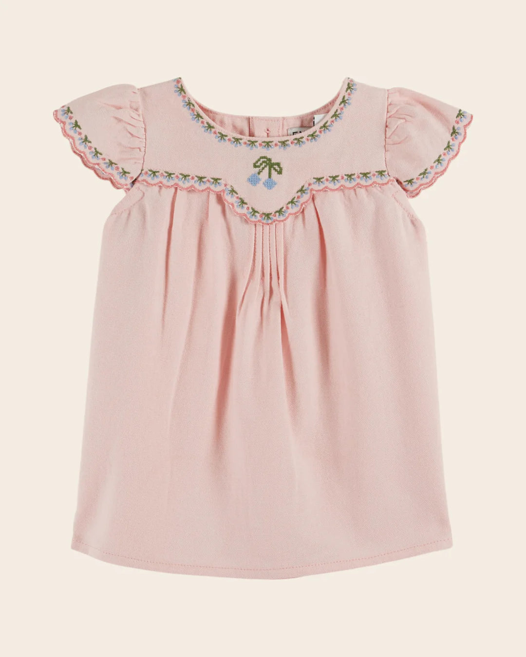EMILE AT IDA Baby dress Embroidered pink cherries