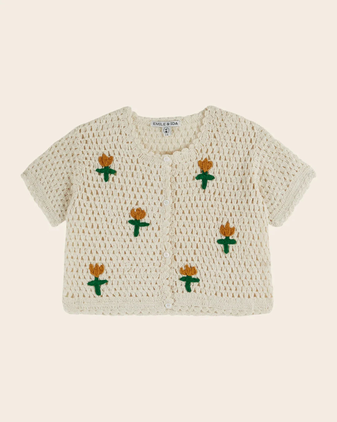 EMILE ET IDA Cardigan Crochet cream flowers